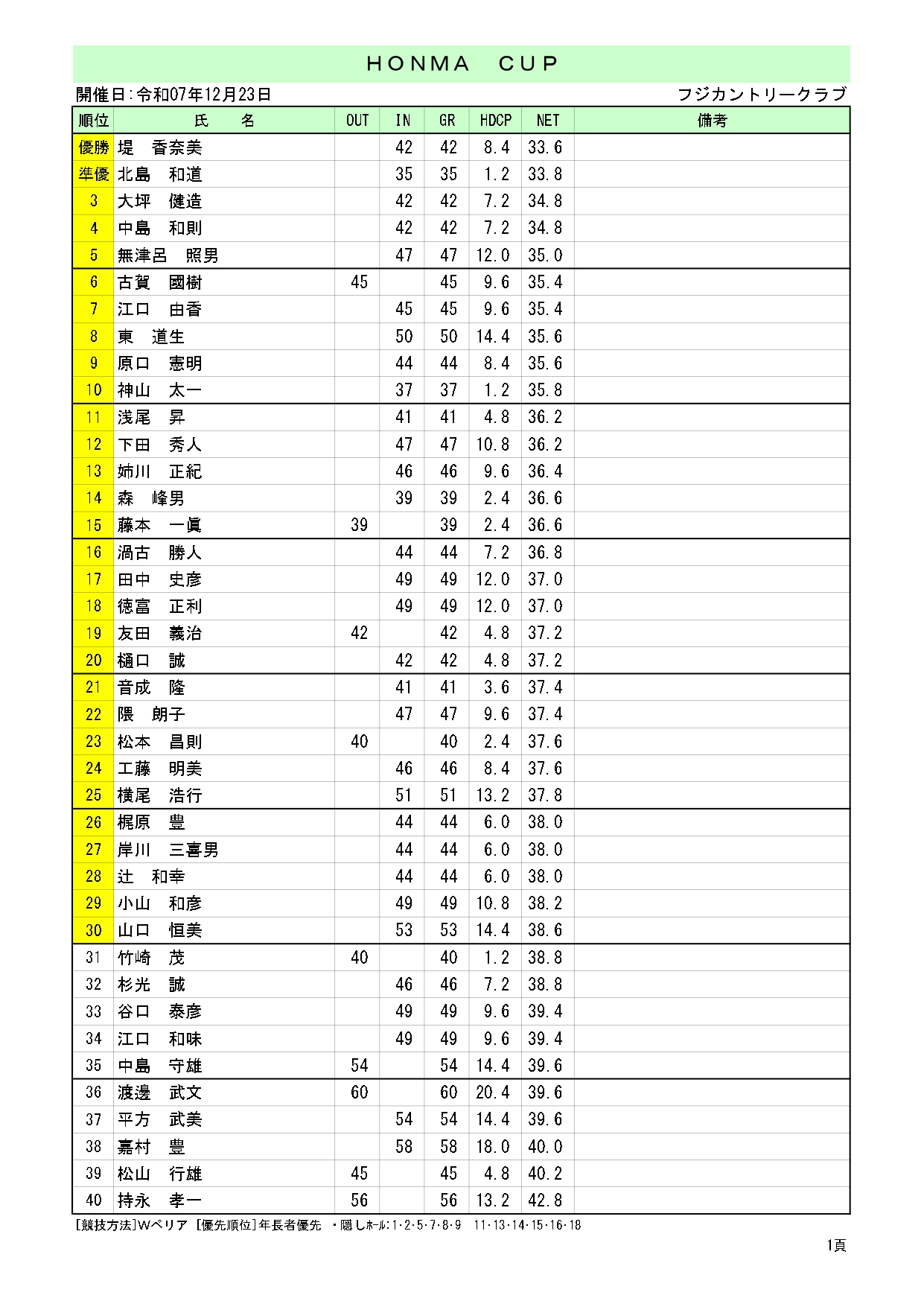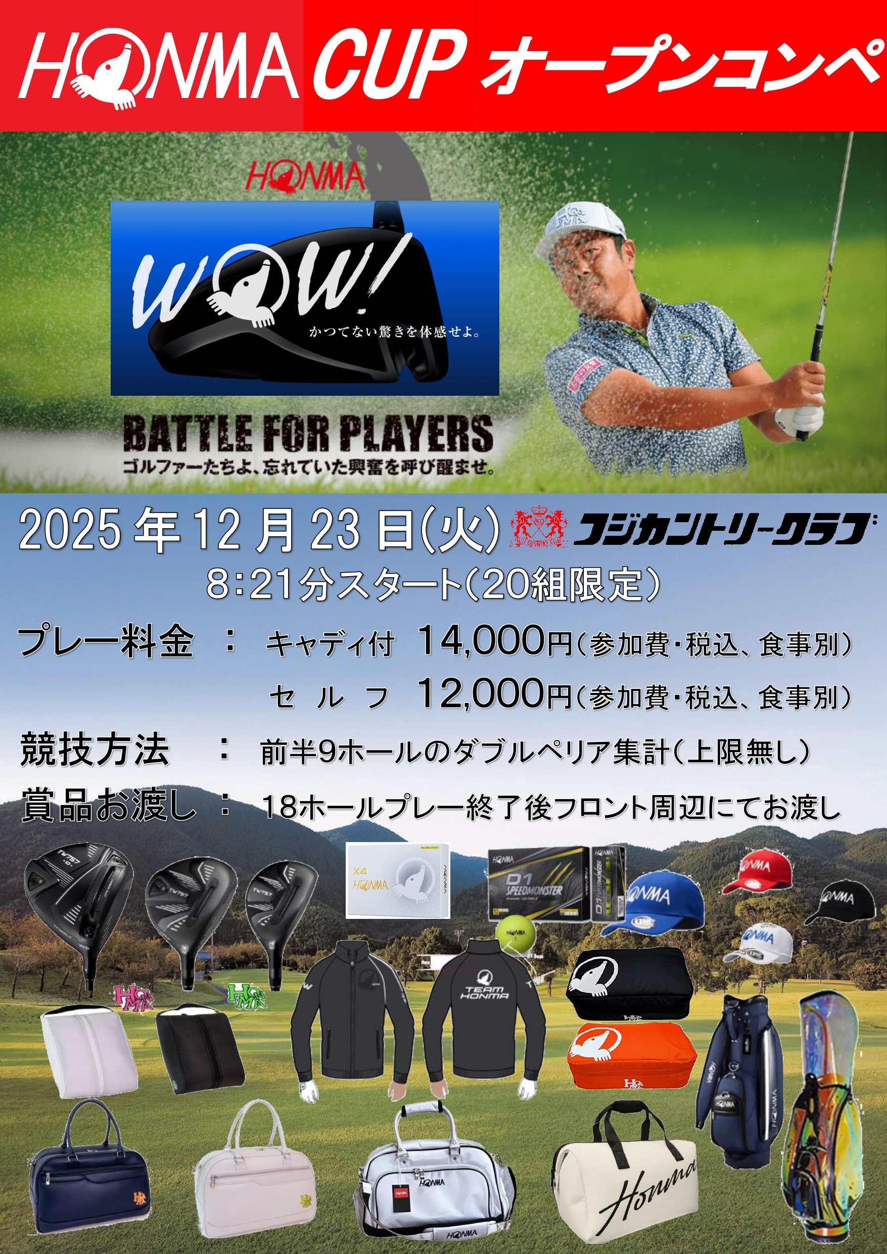 令和7年12月23日(火)に「HONMA CUP 」を開催致しました。40名のお客様にご参加頂きました、誠に有難うございます。不定期でフジカントリークラブ主催のコンペを開催しております。次回開催の際は、皆様のご参加お待ちしております。