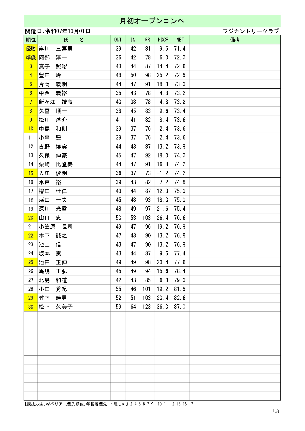 令和7年10月1日(水)に月初オープンコンペを開催致しました。